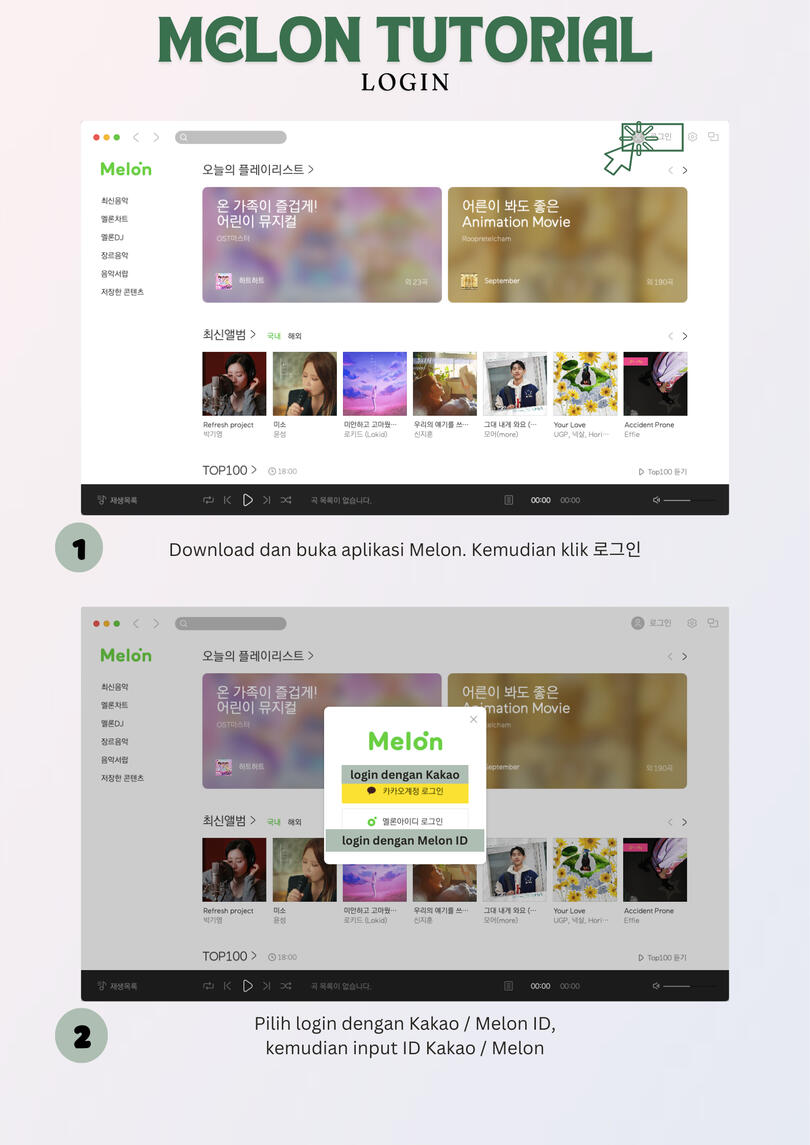 1. Download dan buka aplikasi Melon. Kemudian klik 로그인