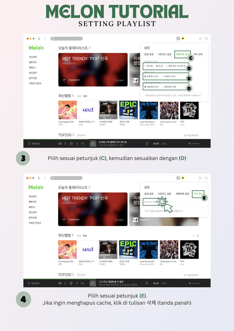 4. Pilih sesuai petunjuk (E). Jika ingin menghapus cache, klik di tulisan 삭제 (tanda panah)