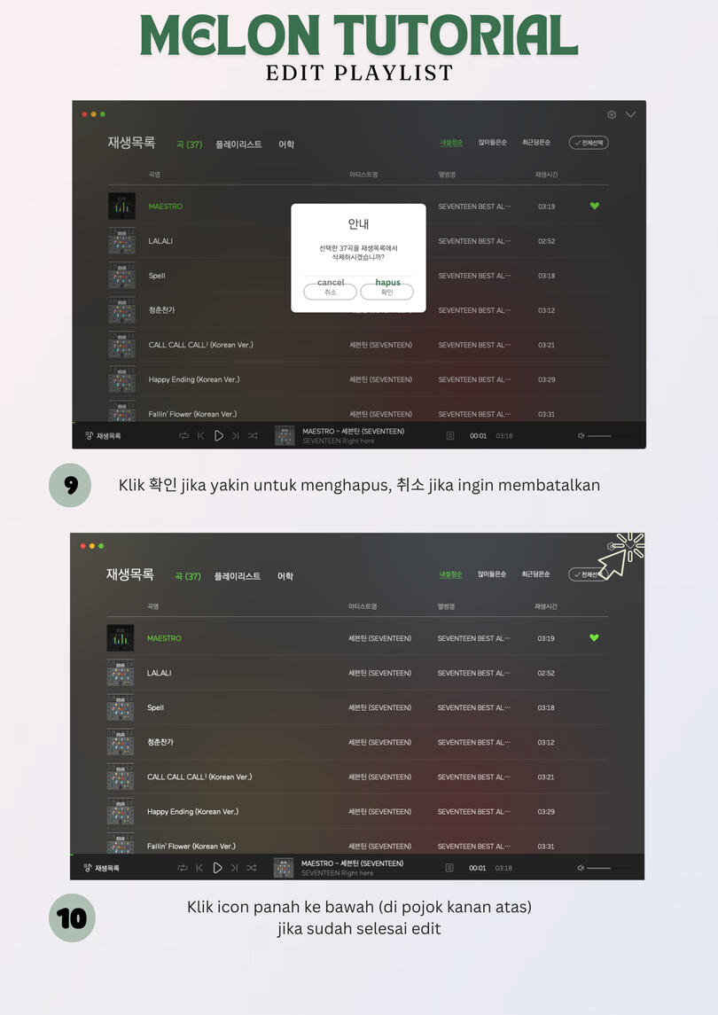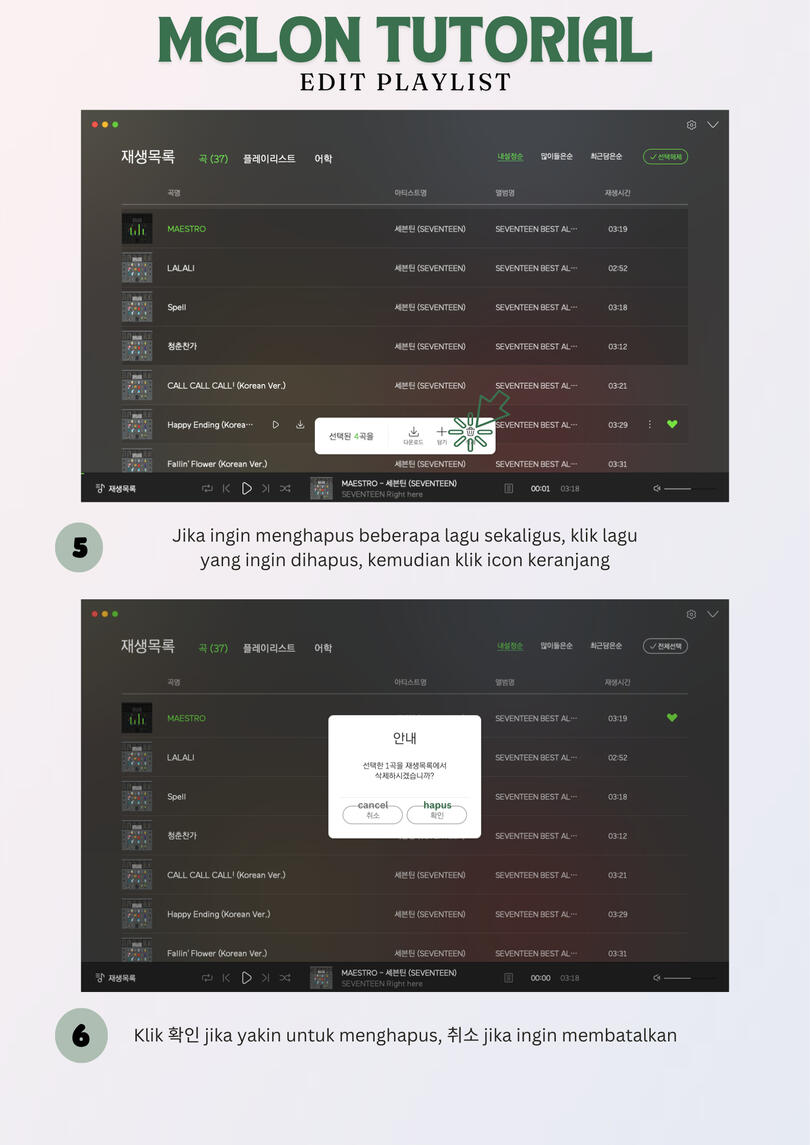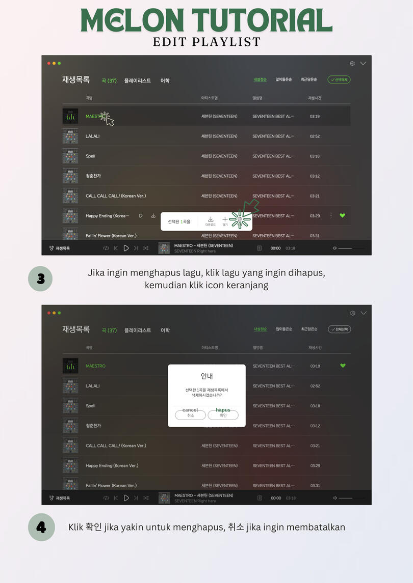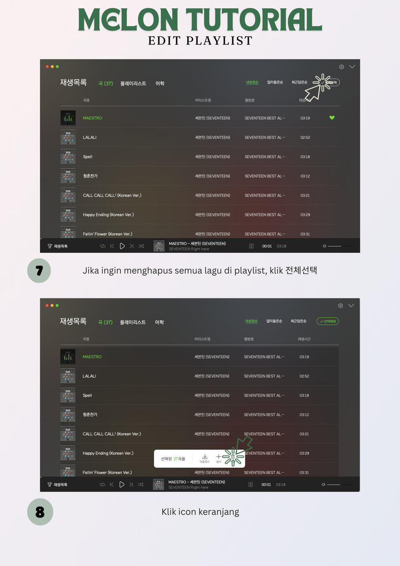 7. Jika ingin menghapus semua lagu di playlist, klik 전체선택
